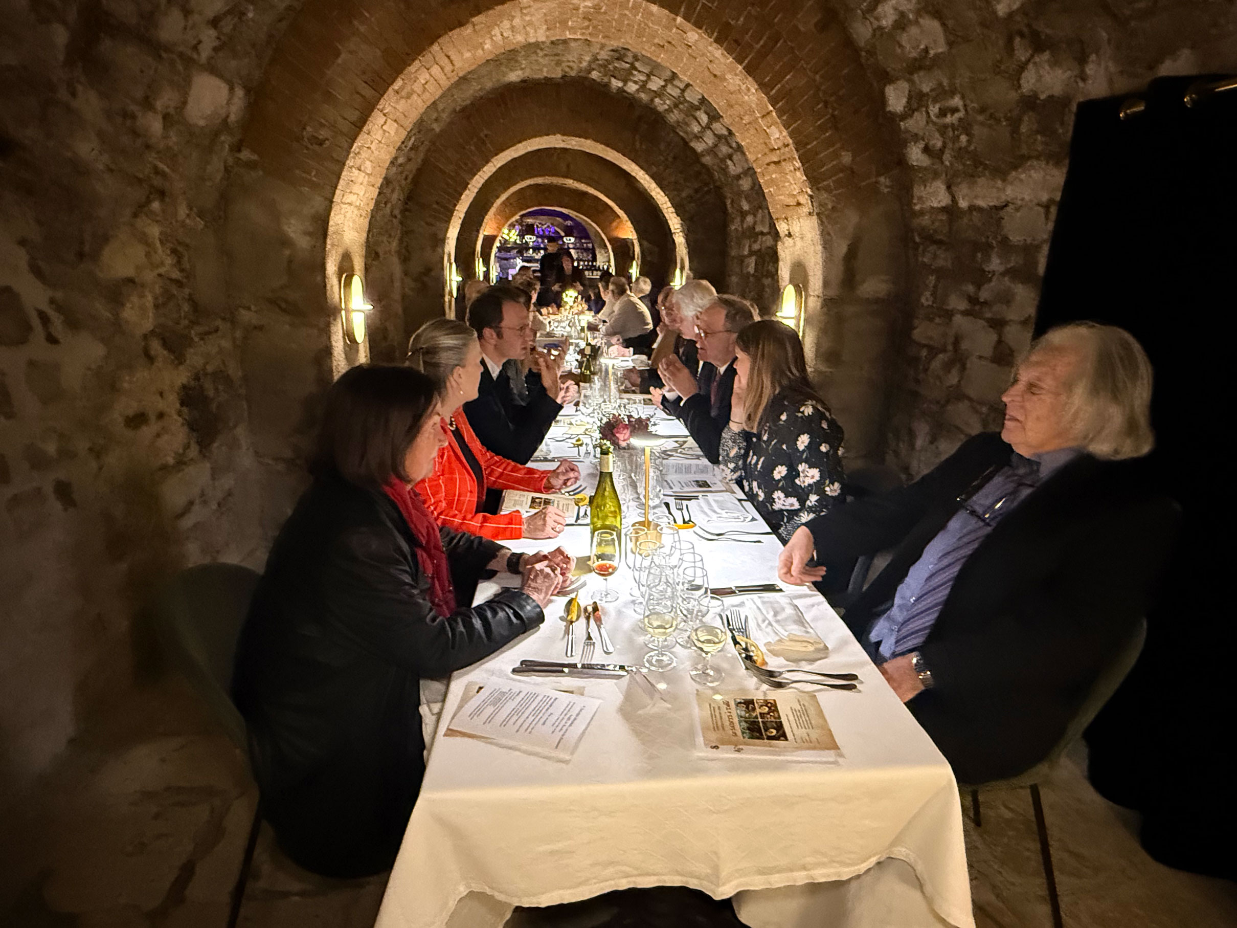 Lors du repas, nos 85 convives mis en appétit par les intronisations menées tambour-battant et par l’hymne des Echansons chanté a-capela par la Chorale, ont pu déguster les plats concoctés par le chef du restaurant M’Musée du Vin.