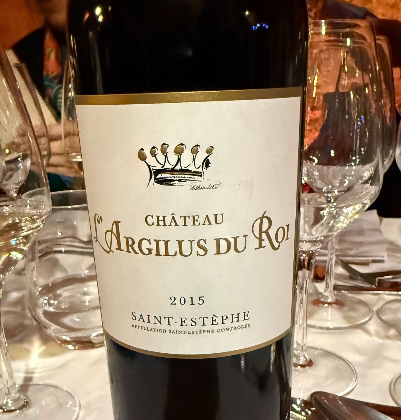 En plat, un Médaillon de canard, au Saint-Émilion et airelles, gratin dauphinois et mâche, a été servi avec un choix de Saint Sardos TERRA 2022 et de Saint-Estèphe L’ARGILUS DU ROY 2015.
